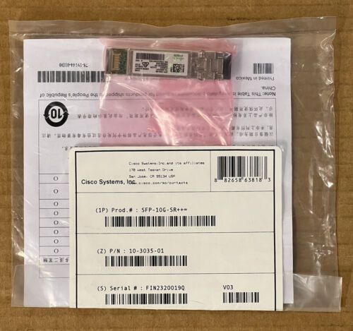 TAA Compliant Genuine Cisco SFP-10G-SR++ SFP+ Transceiver Module LC-LC 10GE MMF