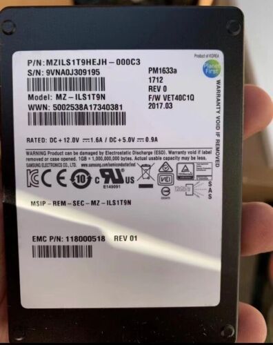 1.92TB SAMSUNG PM1633a SAS SSD MZ1LSHEJH-000C3 MZ-1LS1T9N Solid State Drive