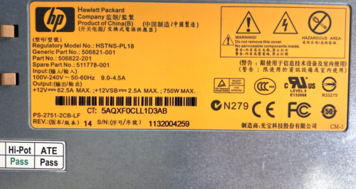 HP HSTNS-PL18 750W Server Power Supply 506821-001 506822-201 511778-001