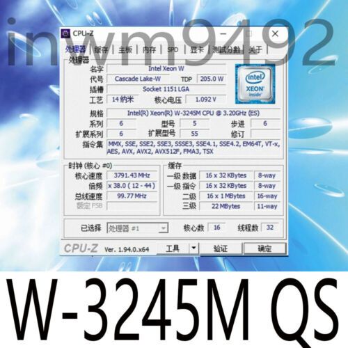 Intel Xeon W-3245M QS QRSM 3.2GHz 16-Core LGA3647 CPU Processor For Mac Pro 2019